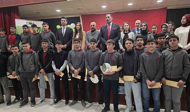 Aras Ticaret Mesleki ve Teknik Anadolu Lisesi'nde yürütülen "Yeşil Vatan İçin TEMA Gönüllülüğü" Projesi'nin kapanış töreninde öğrencilere gönüllü kartları ve "Bu Sınıfın Öğrencileri TEMA Gönüllüsüdür" amblemleri takdim edilirken, doğayı koruma bilincinin yaygınlaştırılması gerektiği vurgulandı.
