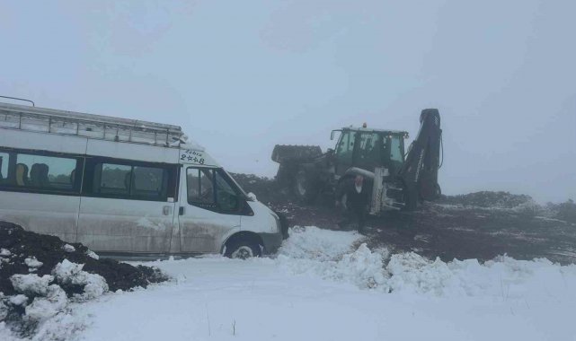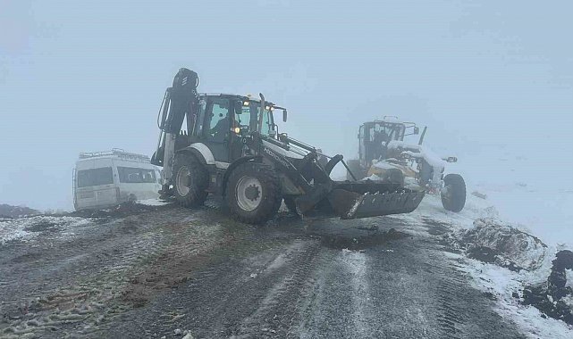 Iğdır'da yoğun kar yağışı: 57 köy yolu ulaşıma kapandı, şarampole devrilen minibüs kurtarıldı