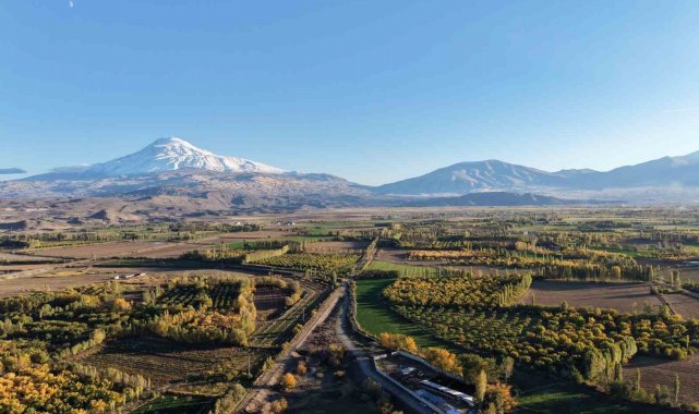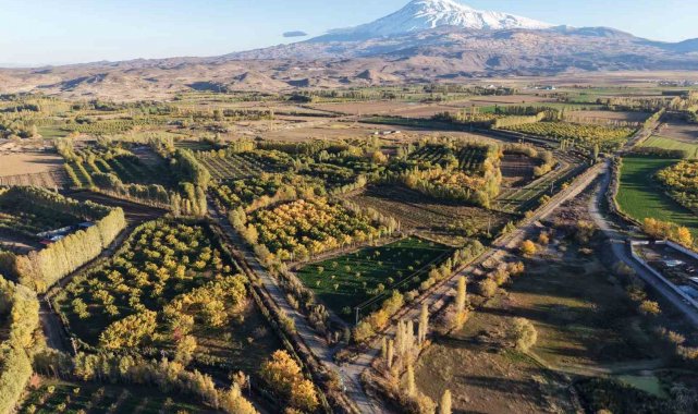 Ağrı Dağı'nın kuzey eteklerinde, Iğdır'ın Melekli beldesinde yer alan İrem Bağları, sonbaharın gelişiyle birlikte adeta renklerin dans ettiği bir tabloya dönüştü.