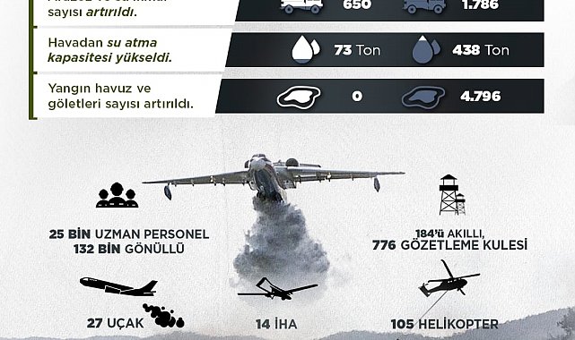 Orman yangınlarında havadan yapılan su atımlarının yangının enerjisinin düşürmeye yönelik olduğu, kara ekiplerinin ise yangının ilerleyişini durdurma, önündeki yanıcıları temizleme, etrafını çevirme ve gerekirse karşı ateş çıkarma gibi teknikler kullandığı belirtildi. Coğrafi şartlara göre farklı tonajlarda ve özelliklerde 27 uçak ve 105 helikopterden oluşan Türkiye hava filosunun karma yapıda güçlü bir filo olduğuna da dikkat çekildi.