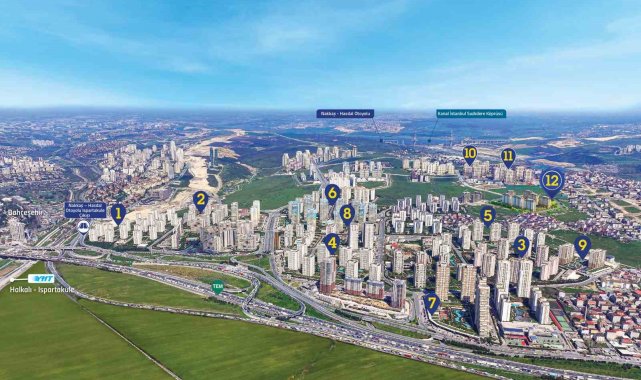 Yüksek yatırım potansiyeli ve aile yaşamına uygun yapısıyla öne çıkan Ispartakule'de konumlanan Bizim Evler 12; geniş peyzaj alanları, ferah konut seçenekleri, tüm ihtiyaçlara yanıt verecek ticari üniteleri, ulaşım avantajları ve eşsiz manzarasıyla dikkat çekiyor. Proje, yapımı hızla devam eden Hasdal - Nakkaş Otoyolu ve TEM Otoyolu Ispartakule gişelerine yalnızca 3 dakika mesafede yer alırken, panoramik Küçükçekmece Gölü manzarasıyla öne çıkıyor. İstanbul Havalimanı ve Yavuz Sultan Selim Köprüsü'ne hızlı ulaşım sağlayan bağlantı yollarının hemen yanı başında bulunan Bizim Evler 12, hem yatırım hem de lokasyon avantajı açısından cazip fırsatlar sunuyor. Türkiye'nin en büyük şehir hastanesi "Çam Sakura" başta olmak üzere eğitim ve sağlık kurumlarına yakın mesafede konumlanan proje, tüm ihtiyaçlara yanıt verecek ticari üniteleriyle bütüncül bir yaşam alanı sunuyor.