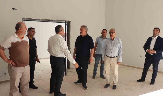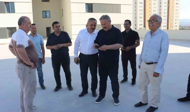 Melikgazi Belediye Başkanı Mustafa Palancıoğlu, yapımında sona doğru gelinen İhlas Vakfı Yurdu'nda incelemelerde bulundu.