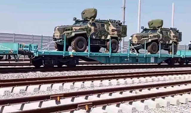 Avrupa'ya ihraç edilen savunma sanayii araçlarını taşıyan tren, Marmaray hattından geçerken görüntülendi. Ankara'da üretilen vagonlar dolusu Ejder Yalçın isimli zırhlı araç, İstanbul üzerinden Kapıkule Sınır Kapısı'na ulaşarak Türkiye'den çıkış yaptı.
