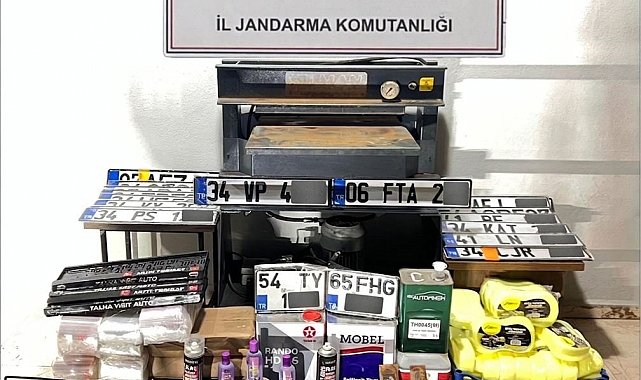 Sakarya İl Jandarma Komutanlığı ekipleri, "Resmi Belgede Sahtecilik" suçuna yönelik yürüttüğü çalışmalar neticesinde, bazı şahısların yasa dışı yollarla sahte plaka üreterek satışını yaptığını belirledi. Cumhuriyet Başsavcılığı koordinesinde harekete geçen ekipler, sahte plaka basımı yapan ana şüpheli ile ona iştirak ettiği değerlendirilen 2 şahsı takibe aldı. Belirlenen 3 farklı adrese eş zamanlı operasyon düzenleyen jandarma ekipleri, yaptıkları aramalarda adeta bir plaka imalathanesiyle karşılaştı. Operasyon kapsamında; 1 adet sahte plaka basımında kullanılan baskı makinesi, 98 adet basılmış sahte plaka, 5 adet numaratör, 6 adet plakalık ve seri üretimde kullanılan çok miktarda sarf malzemesi ele geçirildi. Aramalarda ayrıca plaka yapımında kullanılan 30 kilogram paketleme poşeti, 15 kilogram hidrolik yağı, 6 litre tiner, 7,5 litre akrilik siyah boya, 28 adet temizleme süngeri ve 5 adet muhtelif kimyasal sıvıya el konuldu. Operasyon sonucunda gözaltına alınan 3 şüpheli, jandarmadaki işlemlerinin ardından adliyeye sevk edildi. Şahıslar hakkında "Resmi Belgede Sahtecilik" suçundan adli işlem başlatıldığı öğrenildi.