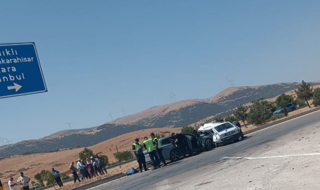 Olay, Dinar-Sandıklı karayolu Uluköy Kavşağı'nda, Afyon Dinar istikametinde 75'inci kilometrede meydana geldi. Edinilen bilgilere göre, Dinar'dan Sandıklı istikametine seyir halinde olan 07 CET 474 plakalı araç, kavşaktan anayola çıkan 03 FU 318 plakalı bir diğer araç ile çarpıştı. Meydana gelen trafik kazasında, Y.B., Z.B., H.K., L.K., L.D. ve R.D. yaralandı. Y.B.'nin durumunun ağır olduğu öğrenildi.