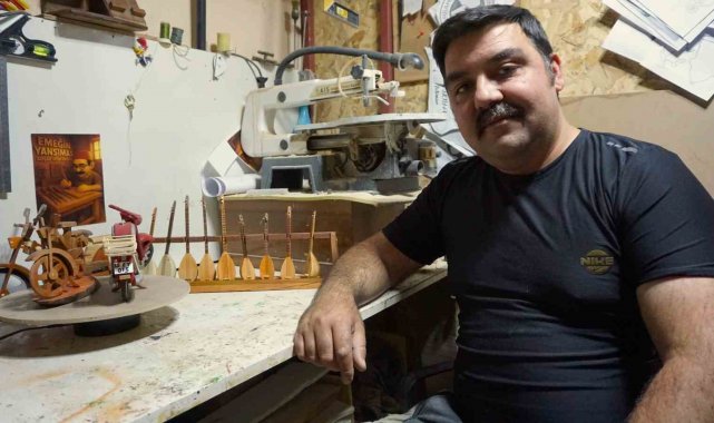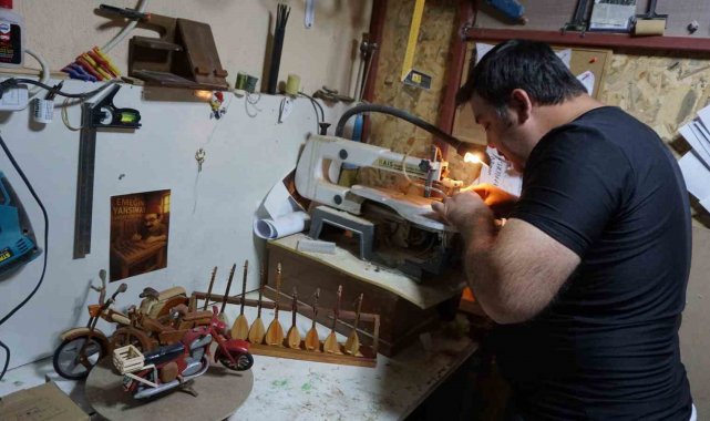 Sanat yolculuğunu ve eserlerine duyduğu sevgiyi anlatan Özel, "Ahşap işleme sanatına yaklaşık 5 yıl önce, tamamen hobi amaçlı başladım. Evin kenarında bulunan 5 metrekarelik bir alanı küçük bir atölyeye dönüştürdüm. İki kalas bir hevesle çıktığım bu yolda, zamanla işler büyüdü ve ortaya birbirinden farklı eserler çıktı. Aklınıza gelebilecek her şeyi ahşaba dökebiliyorum. Özellikle geçmişte kullanılan ulaşım araçlarını, motosikletleri, yöremizde çalınan saz ve cura türü müzik aletlerini minyatür boyutlarda yapıyorum. Ayrıca su kabağını da işleyerek dekoratif objeler haline getiriyorum. Her bir parçayı büyük bir emekle, sabırla hazırlıyorum" dedi. Bu işten maddi bir kazanç elde etmediğini belirten Özel, "Tamamen keyif, merak ve gönül işi olarak yapıyorum. Ahşabın gönle sığmayan güzelliklerini emeğimizle birleştiriyor, kalıcı hatıralara dönüştürüyoruz. Gönüllere sığdıramadığımız güzellikleri, bir anı kalsın diye ahşaba işlemeye devam edeceğiz" şeklinde konuştu.