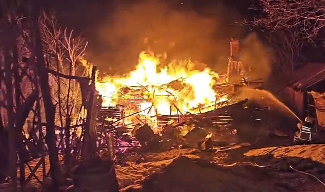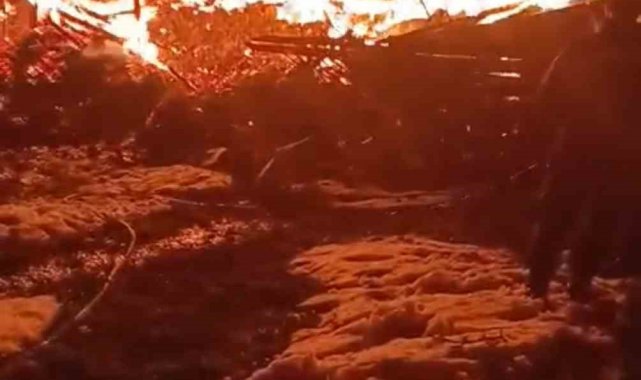 Evin alt kısmının odunlarla dolu olması nedeniyle yangını söndürme çalışmaları 6 saattir devam ediyor.