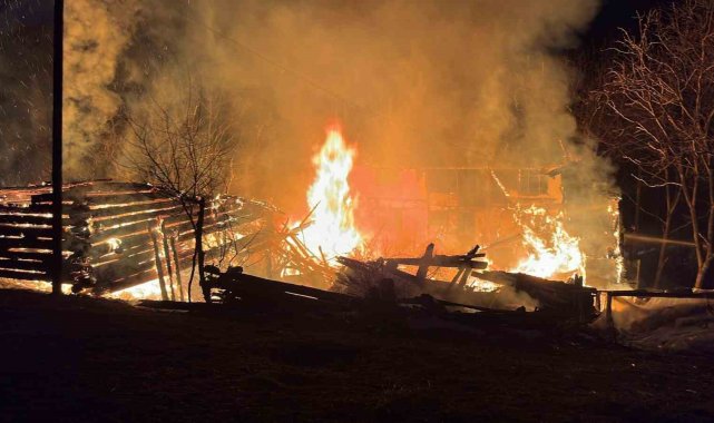Yangında iki katlı ev ve odunluk kullanılamaz hale gelirken, olayla ilgili inceleme başlatıldı.