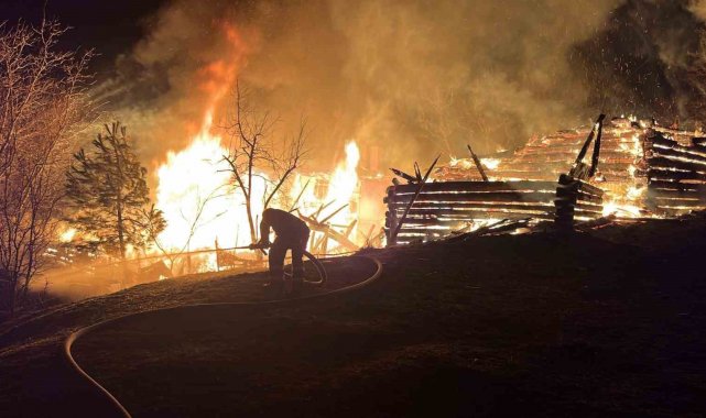 Karabük'ün Eskipazar ilçesinde çıkan yangında iki katlı ev ile odunluk kullanılamaz hale geldi.