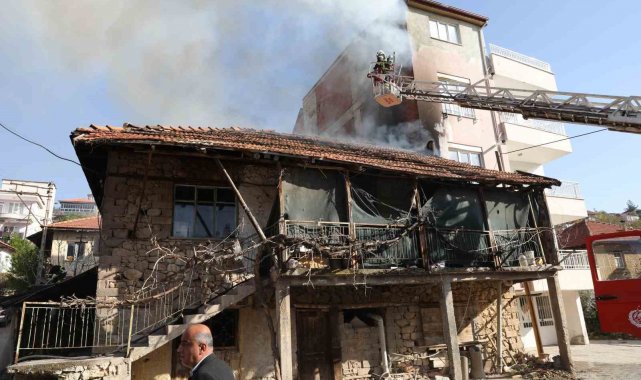 İki katlı evde çıkan yangında yaşlı kadın dumandan etkilendi