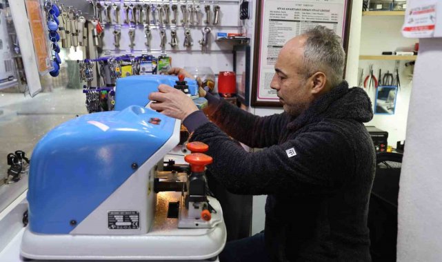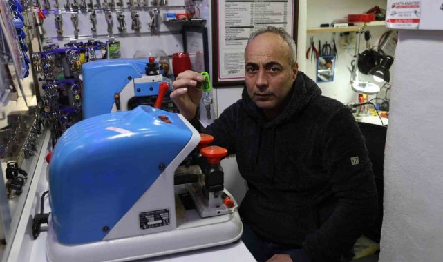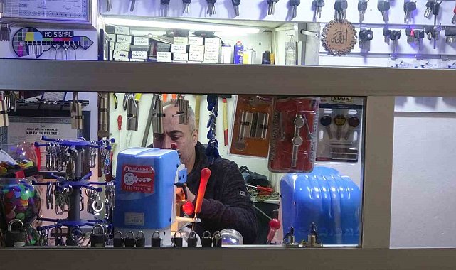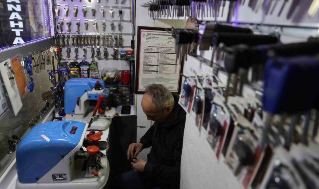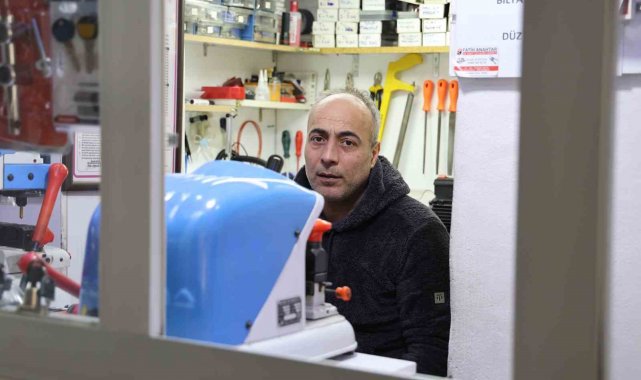 Sivas'ta anahtarcılık yapan Fatih Boztepe iki metrekarelik dükkânından kazandığı parayla iki çocuğunu okutuyor.
