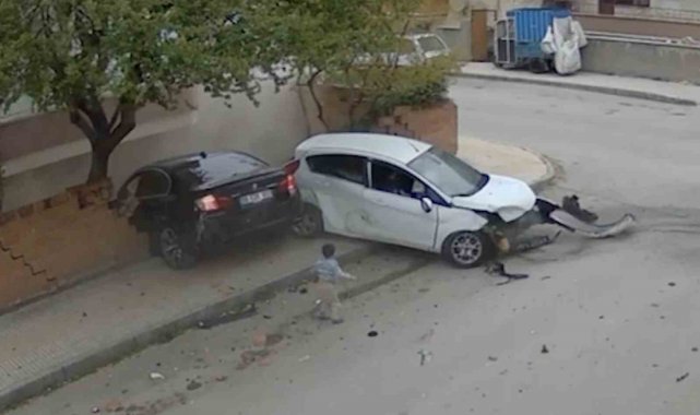 Öte yandan, kaza anı güvenlik kamerasına yansıdı. Çarpmanın etkisiyle savrulan araçlardan birinin bahçeye girdiği, diğer otomobildeki çocuğun camdan dışarı fırladığı anlar görüntülere yansıdı.