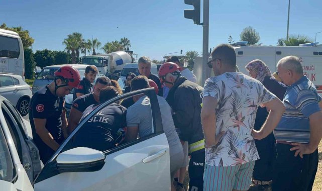 Antalya'nın Alanya ilçesinde iki otomobilin çarpışması sonucu meydana gelen kazada bir kişi araçta sıkıştı. Yaralı sürücüyü itfaiye ekipleri kurtardı.