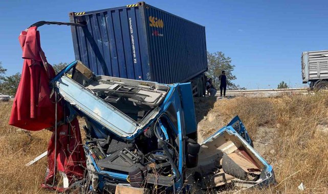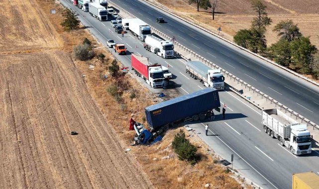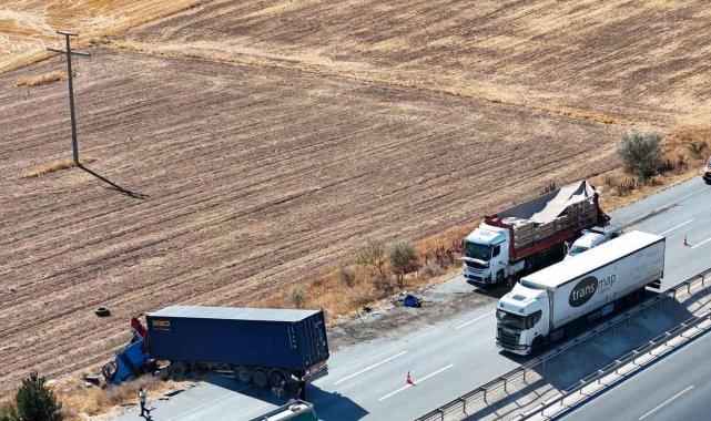 İki tır çarpıştı, şans eseri ezilen kabinden çıkan sürücüye diğer meslektaşı kurabiye ikram etti