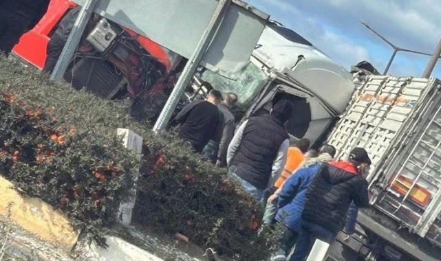 İki tırın kafa kafaya çarpıştığı kaza anı güvenlik kamerasında