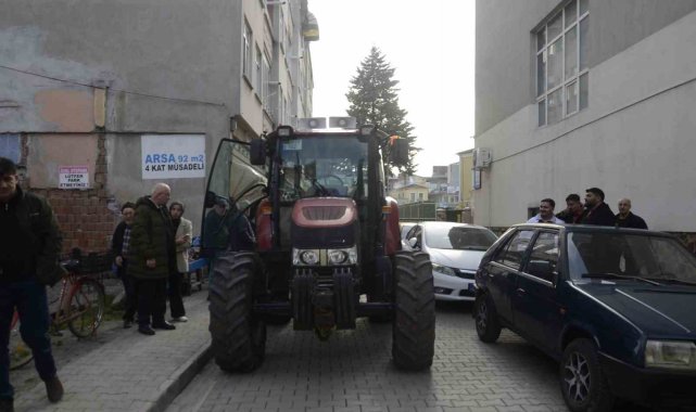 İki yıldır çözüm bulamadı, traktörüyle Bafra Belediyesi önüne dayandı