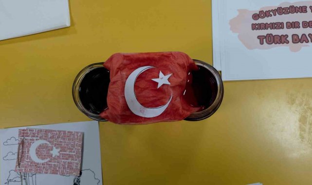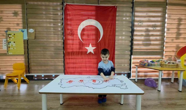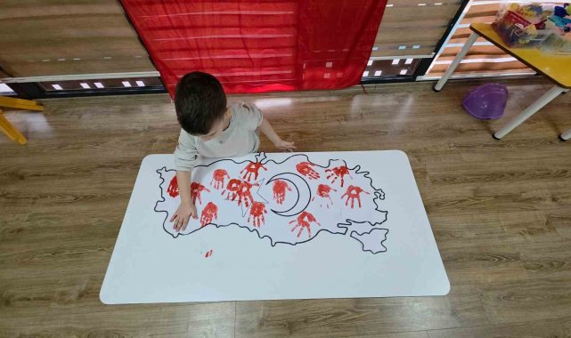3-4 yaş sınıfında ise minik öğrenciler Türkiye haritası üzerinde el baskısı yaparak Türk bayrağını oluşturdular. Minikler, bayrağı oluşturduktan sonra coşkuyla Türk bayrağı sallayarak etkinliklerini tamamladılar.