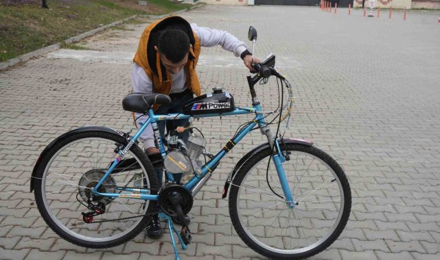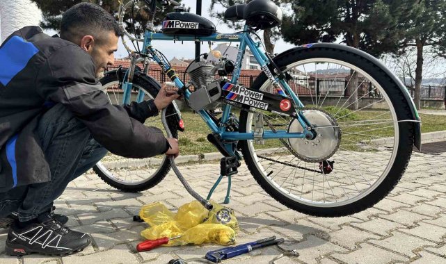 Kastamonu'da yaşayan Enes Özer, geri dönüşüm malzemeleri ve internetten bulduğu motor parçalarıyla ikinci el olarak satın aldığı bisikleti mobilete dönüştürdü. Özer'in yaptığı motorlu bisikleti gören vatandaşlar ise kendileri için yapmasını da talep ediyor.