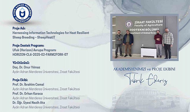 Aydın Adnan Menderes Üniversitesi (ADÜ), Ufuk (Horizon) Avrupa Programı kapsamında "yüksek öncelikli" olarak desteklenmeye hak kazanan uluslararası bir proje ile iklim değişimine dayanıklı koyunculuk alanında Türkiye'yi Avrupa'da temsil edecek. Toplam 6 milyon avro bütçeye sahip "Harnessing Information Technologies for Heat Resilient Sheep Breeding - SheepHeatIT" adlı projenin Türkiye koordinatörlüğünü, ADÜ Ziraat Fakültesi öğretim üyesi Doç. Dr. Onur Yılmaz yürütüyor. Projede, Ziraat Fakültesi öğretim üyeleri Prof. Dr. İbrahim Cemal, Prof. Dr. Orhan Karaca ile Dr. Öğr. Üyesi Nezih Ata araştırıcı olarak yer alırken, 10 farklı ülkeden araştırma kuruluşları da projeye katkı sağlıyor. Avrupa Birliği Komisyonu tarafından yapılan değerlendirmeler sonucunda desteklenmeye değer bulunan proje, iklim değişikliğine bağlı artan sıcaklık stresi ve aşırı hava olaylarının koyunculuk sektörü üzerindeki olumsuz etkilerine çözüm üretmeyi amaçlıyor. Proje kapsamında, koyun sürülerinin yüksek sıcaklık şartlarındaki fizyolojik ve ekonomik dayanıklılığını ifade eden Sürü Sıcaklık Dayanıklılık Skoru'nun (HHRS) artırılması hedefleniyor. Proje çerçevesinde ileri genomik uygulamalar, yüksek çözünürlüklü termal ve dijital fenotipleme teknolojileri ile yapay zeka destekli veri analiz yöntemleri birlikte kullanılarak, koyunculuk sektörüne iklim değişikliğine uyumlu ve sürdürülebilir bilimsel çözümler geliştirilmesi planlanıyor. Türkiye ayağında yürütülecek çalışmalar kapsamında elde edilecek örneklerin ileri laboratuvar analizleri, ADÜ Tarımsal Biyoteknoloji ve Gıda Güvenliği Uygulama ve Araştırma Merkezi (TARBİYOMER) bünyesinde gerçekleştirilecek. Yaklaşık 400 bin avro bütçeye sahip Türkiye çalışmaları, proje kapsamında önemli bir rol üstlenecek. Projede görev alan akademik ekip, bugüne kadar yerli gen kaynaklarının geliştirilmesi ve korunmasına yönelik birçok ulusal projeyi başarıyla tamamladı. Yapılan çalışmalar sonucunda Karya ve Eşme koyun ırkları geliştirilerek milli ırk olarak tescil edilirken, Aydın'a özgü endemik bir koyun ırkı olan Çine Çaparı'nın özellikleri belirlenerek koruma altına alındı. Proje ile birlikte yerli koyun ırklarının sıcaklık stresine dayanıklılık özelliklerinin belirlenmesi, bu özelliklerin genomik düzeyde analiz edilmesi ve elde edilen bilimsel verilerin ıslah ve yetiştiricilik programlarına aktarılması hedefleniyor. Proje çıktılarıyla Türkiye ve Avrupa koyunculuğunun iklim değişikliğine karşı daha dayanıklı ve sürdürülebilir bir yapıya kavuşması amaçlanıyor.