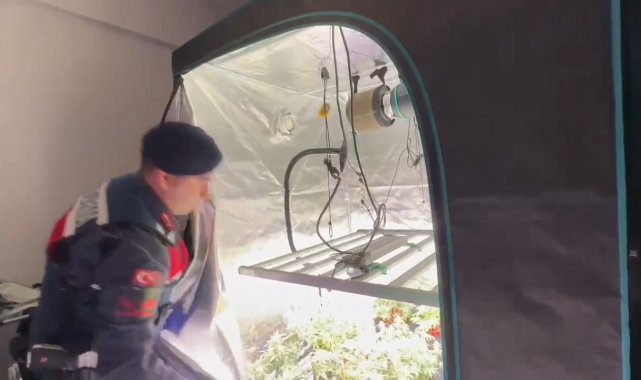Samsun'da iklimlendirme sistemi kurulan evde 11 kök kenevir bitkisi, uyuşturucu kullanma aparatı ve bir miktar uyuşturucu ele geçirildi.