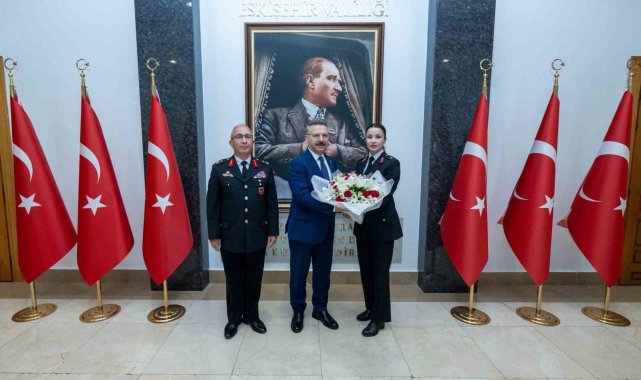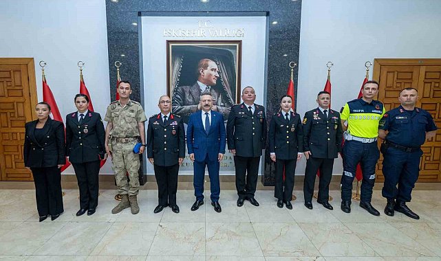 Eskişehir Valisi Hüseyin Aksoy, Jandarma Teşkilatı'nın 186'ncı kuruluş yıl dönümü dolayısıyla İl Jandarma Komutanı Tuğgeneral Erhan Demir ve beraberindeki jandarma personelini makamında kabul etti.