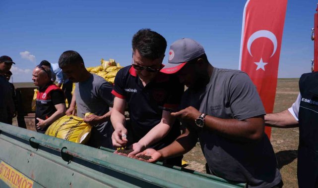 Eskişehir'de İl Tarım ve Orman Müdürü Ender Muhammed Gümüş'ün katılımıyla iklim değişikliğine dayanıklı tarımsal üretim için 1 milyon 500 metrekare mera arazisinde gübreleme yapıldı.