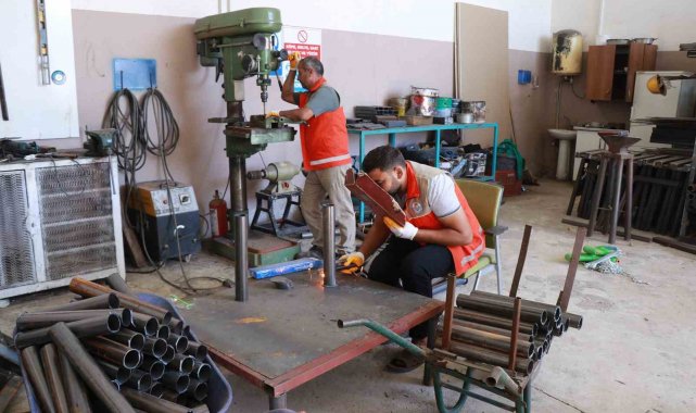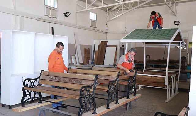 Belediye Başkanı Mehmet Canpolat'ın talimatlarıyla çalışmalarını sürdüren Kırsal Hizmetler Müdürlüğü, park ve yeşil alanları modern hale getirmek amacıyla üretim faaliyetlerini hızlandırdı. Metal, boyama ve ahşap atölyelerinde seri üretim yapan ekipler, kaynak ve boyama işlemleri tamamlanan ürünleri monte ederek parklara kazandırıyor.
