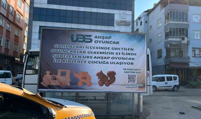 Samsun'un Salıpazarı ilçesinde ahşap oyuncak üretimi yapan bir iş insanı, başlattığı sosyal sorumluluk projesiyle çocuklara ücretsiz oyuncak hediye ediyor. İlçedeki billboardlara yerleştirilen QR kodlarını okutan çocuklar, sürpriz hediyeler kazanıyor.