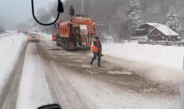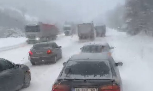 Kastamonu-Çankırı sınırında bulunan Ilgaz Dağı'nda akşam saatlerinde etkisini arttıran kar yağışı nedeniyle ağır tonajlı araçlar yolda mahsur kaldı. Araçların yolda kalması nedeniyle bir süreliğine trafik durdu.
