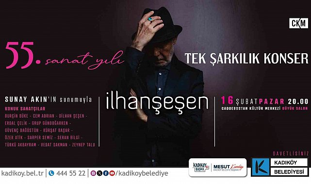 Kadıköy Belediyesi, usta sanatçı İlhan Şeşen'in 55. sanat yılını özel bir etkinlikle kutluyor. 16 Şubat'ta CKM'de düzenlenecek gecede, ünlü sanatçılar İlhan Şeşen'in şarkılarını seslendirecek.