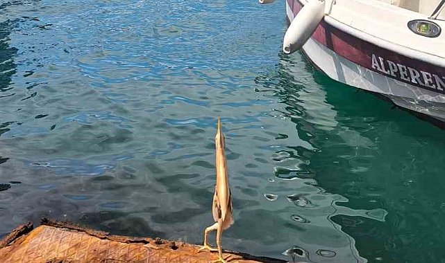 Trabzon'un Ortahisar ilçesi Faroz Balıkçı Limanı'nda bir balıkçı ilk kez gördüğü Cüce balaban kuşunu cep telefonu ile kayda aldı.