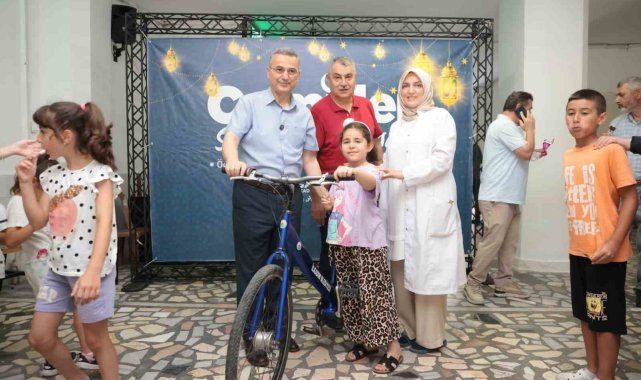Kur'an kursunda başarı gösteren iki öğrenciye Başkan İhsan Kurnaz tarafından bisiklet hediye edildi.