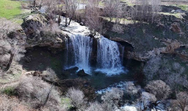 Sivas kent merkezine 53 kilometre uzaklıktaki Yıldız Beldesi'nde yer alan Değirmenaltı Şelalesi, her mevsim farklı manzaralar sunuyor. Yaz aylarında yüzlerce misafiri ağırlayan şelale, ilkbahar ile birlikte coştu. Kış boyunca yağan karın erimesi ve bahar yağmurlarının artmasıyla birlikte coşan şelale, eşsiz görüntüler oluşturdu. Yaklaşık 27 metre yükseklikteki sarp kayalardan dökülen Değirmenaltı Şelalesi, dron ile görüntülendi.