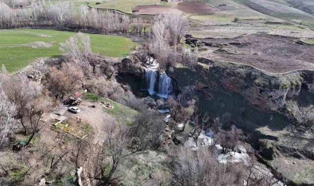 Sivas'ta yer alan ve 27 metre yükseklikten dökülen Değirmenaltı Şelalesi, ilkbahar ile birlikte coştu.