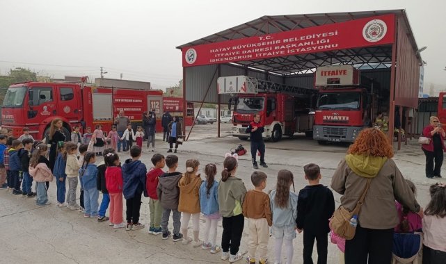 İskenderun'da bulunan itfaiye istasyonunu ziyaret eden Hürriyet İlkokulu öğrencileri, Hatay Büyükşehir Belediyesi İtfaiye Dairesi Başkanlığı ekipleriyle bir araya geldi. Ziyaret kapsamında öğrencilere itfaiyenin görevleri, yangınlara müdahale yöntemleri ve acil durumlarda yapılması gerekenler hakkında bilgi verildi.