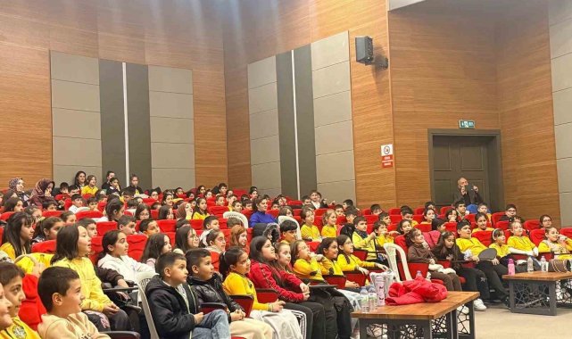 Kayseri'de İlkokulu öğrencileri, 'Ağustos Böceği ile Karınca' isimli oyunu tiyatroda izledi.