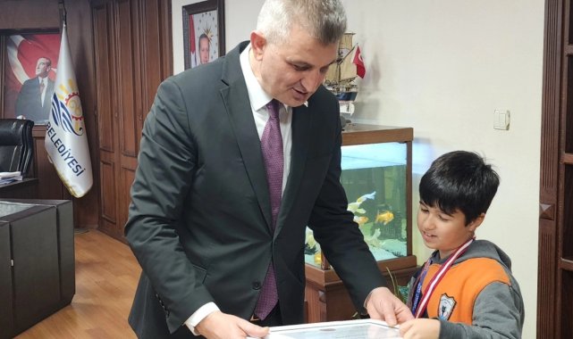 Gölcük Belediye Başkanı Ali Yıldırım Sezer, ulusal ve uluslararası matematik olimpiyatlarında 3 altın madalya kazanan ilkokul öğrencisi Sarp Arel Güvenç'i ağırladı.