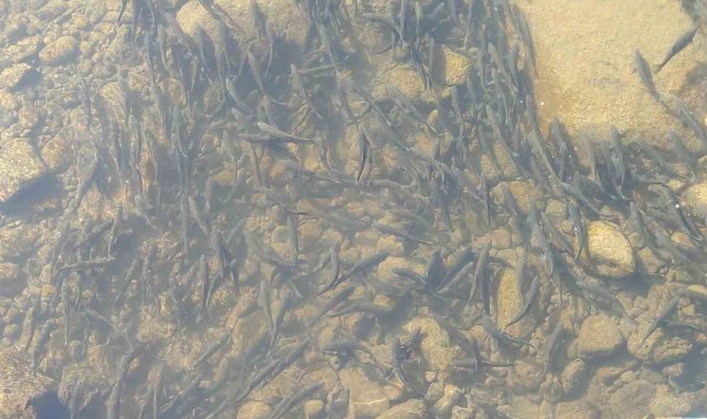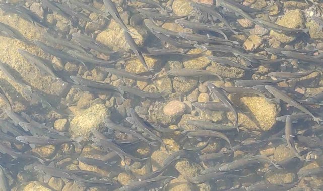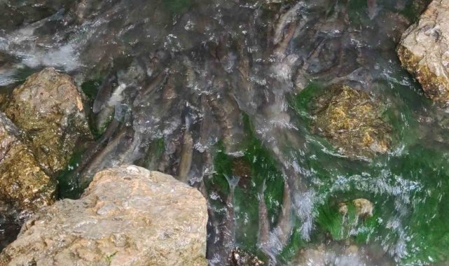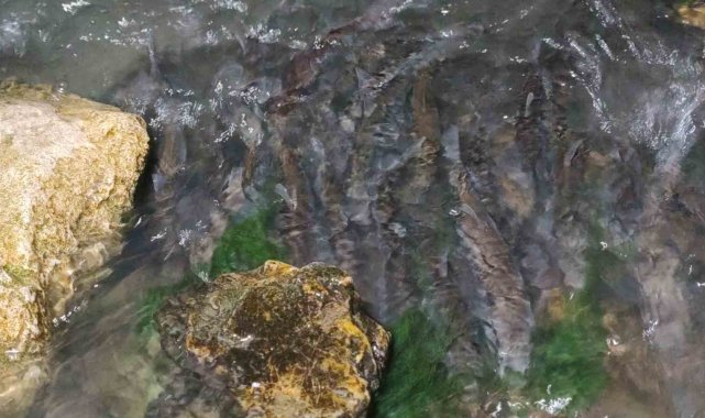 Van Gölü'ndeki binlerce inci kefali, su sıcaklığının yeterli seviyeye yükselmesiyle üremek için akışın tersine yüzerek tatlı sulara göç ediyor.