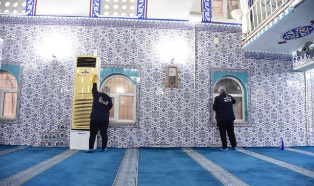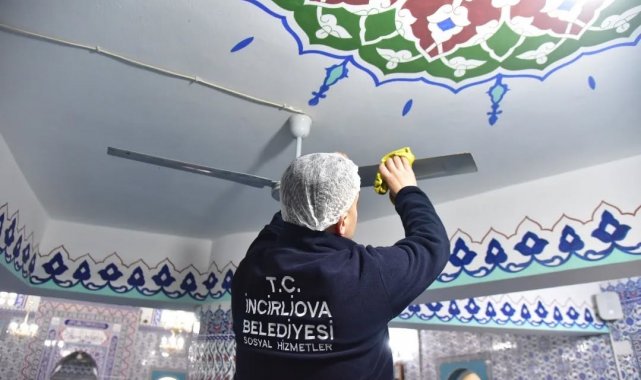 İncirliova Belediyesi ekipleri ilçedeki camilerde temizlik çalışmalarını sürdürüyor.