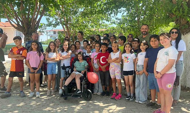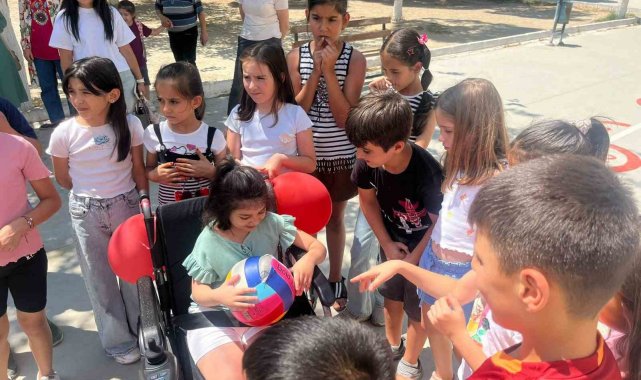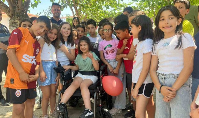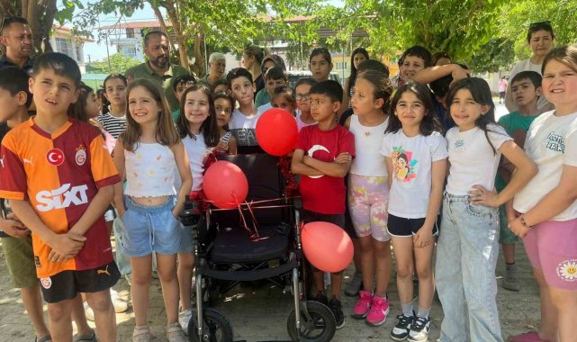 Aydın'ın İncirliova ilçesindeki Hürmüs Ayaydın İlkokulu 3/D sınıfı öğrencileri, Kurban Bayramı harçlıklarını biriktirerek aldıkları 6 akülü tekerlekli sandalyeden ilkini, aynı okulda eğitim gören serebral palsi hastası 9 yaşındaki arkadaşları Hira Aşıcı'ya hediye etti.