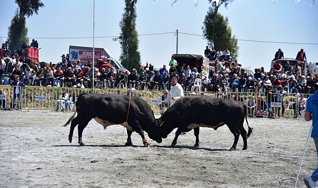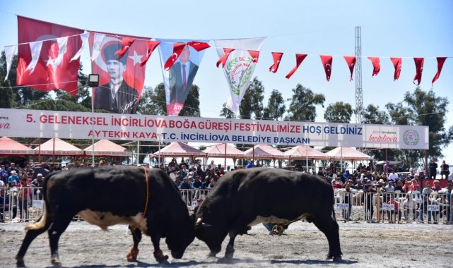 İncirliova Belediyesi'nin katkıları ile düzenlenen Geleneksel Boğa Güreşleri etkinliğinde arenaya çıkan pehlivan boğaların mücadeleleri nefesleri kesti.
