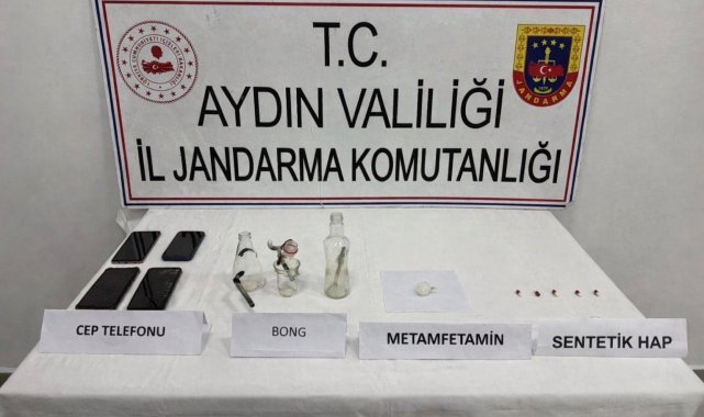 Aydın İl Jandarma Komutanlığı Narkotik Suçlarla Mücadele Şube Müdürlüğü ile İncirliova İlçe Jandarma Komutanlığı ekiplerince uyuşturucu ile mücadele kapsamında yürütülen çalışmalar çerçevesinde İncirliova ilçesi Karabağ Mahallesi ile Köprüova Mahallesi'nde iki ayrı adrese yönelik arama gerçekleştirildi. M.G. (23) isimli şüphelinin kullandığı baraka ile G.G. (34) isimli şüphelinin kullandığı bağ evinde yapılan aramalarda 11 gram metamfetamin, 9 adet sentetik hap, 4 adet bong aparatı, 4 adet cep telefonu, 156 gram tütün üzerine püskürtülmüş sentetik kannabinoid olduğu değerlendirilen madde, 1,1 gram kenevir tohumu, 1 adet kurusıkı tabanca ele geçirildi.