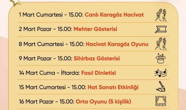 AVM'de etkinlikler her gün saat 15.00'te başlayacak. Fasıl dinletileri ise iftar saatinde yemek katında ziyaretçilerle buluşacak. AVM'nin geçtiğimiz ay hayata geçirdiği sosyal sorumluluk projesi "Gelenekten Geleceğe" temasıyla hazırlanan Ramazan etkinlik programı, köklü Ramazan geleneklerini günümüze taşıyarak farklı bir atmosfer sunacak.