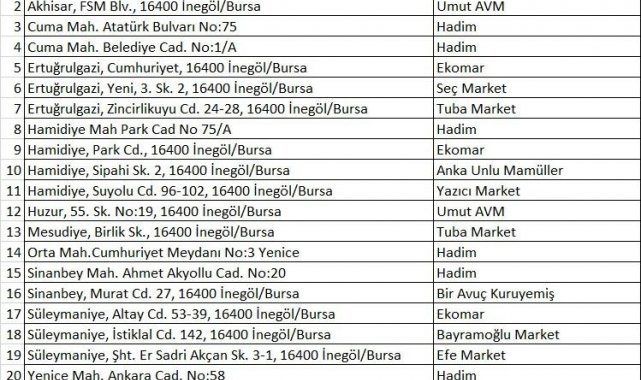 Başlangıç için günlük 2 bin adet üretim kapasitesiyle halk ekmek üretiminin startının verildiğini dile getiren Başkan Taban, "İnegöl Belediyesi halk ekmeği farklı mahallelerimizde 22 ayrı noktada satışa sunuldu. İnegöl Yerel Esnaf Platformu (İYEP) üyesi işyerlerimiz ekmek satış noktası oldu. Ancak zamanla hem ekmek üretimimiz artacak ve çeşitlenecek hem de satış noktalarımız talebe göre artacak. Şu an 11 ayrı mahallemizde 22 satış noktası bulunuyor" açıklamalarında bulundu.