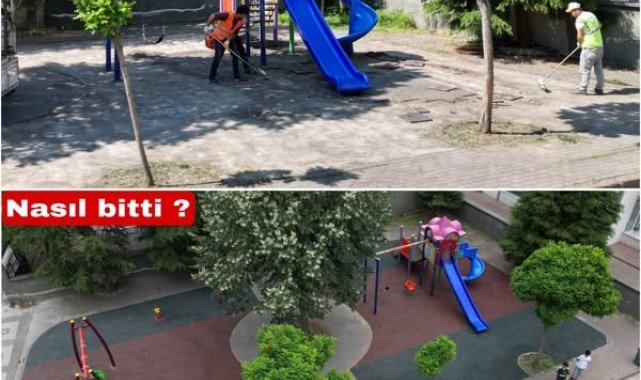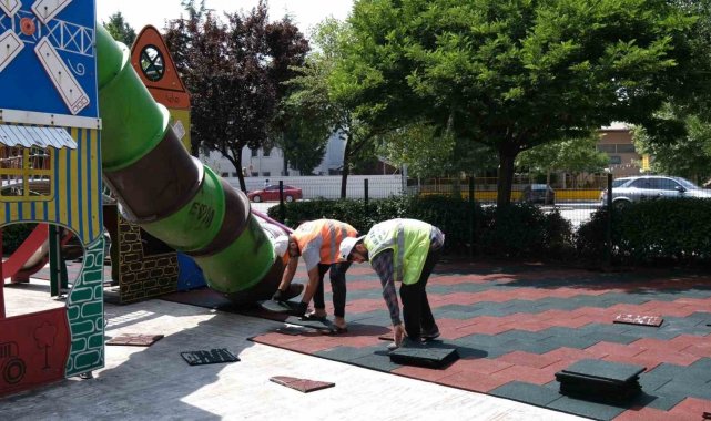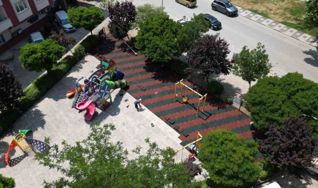 İnegöl Belediyesi, şehir genelinde 10 yılın üzerinde hizmet veren 34 çocuk oyun alanında zemin değişimi gerçekleştirdi ve parklardaki oyuncakların bakımlarını yaptı.