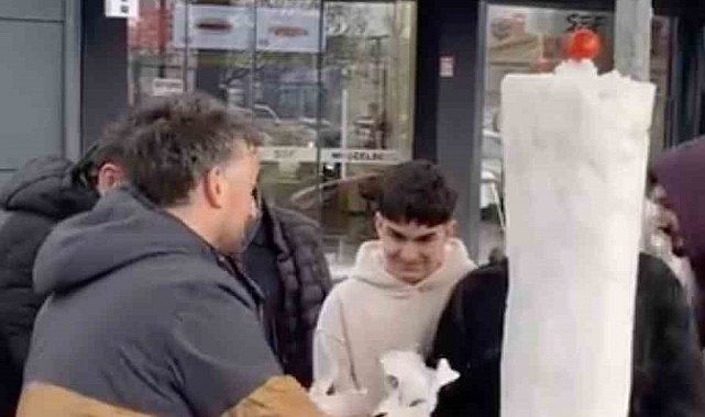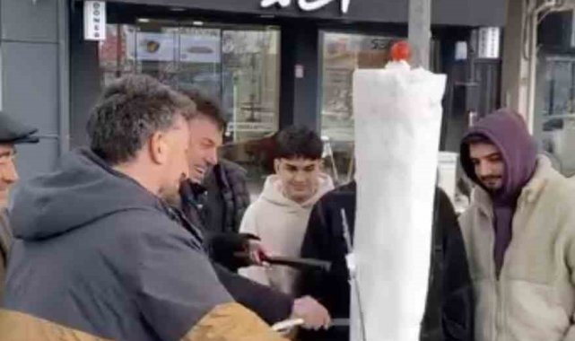 Bursa'nın İnegöl ilçesinde bir döner ustası, kar yağışını fırsata çevirerek dikkat çeken bir etkinliğe imza attı. Döner şişine kar kütlesi takan usta, iş yerinin önünde vatandaşlara "kardan döner" ikram etti.