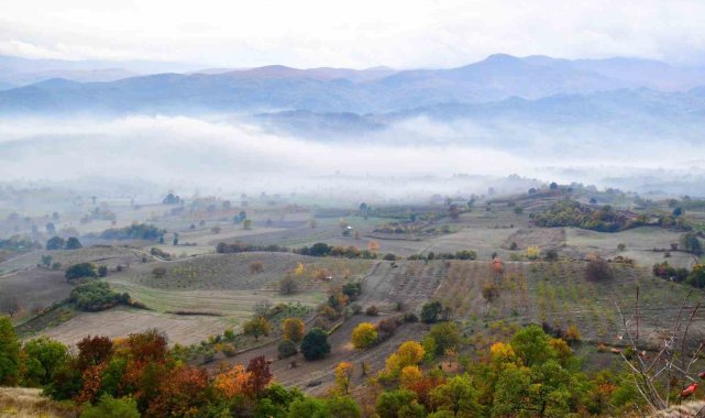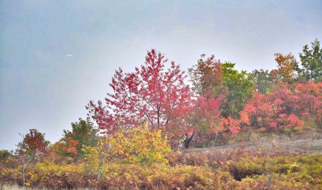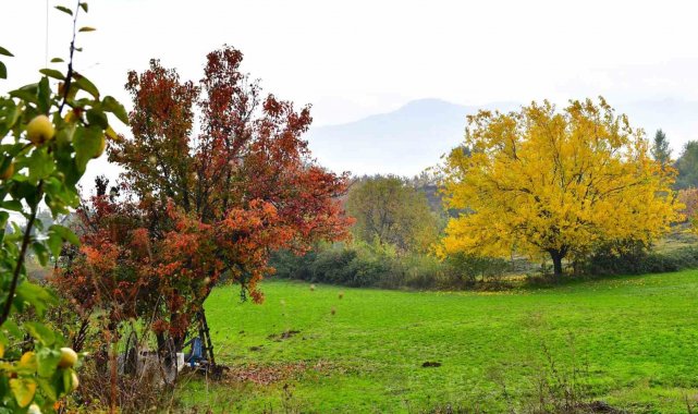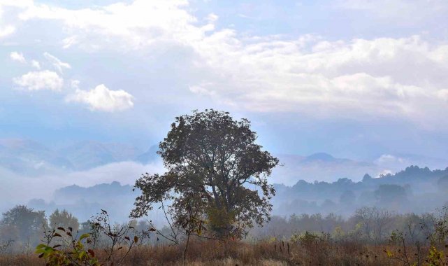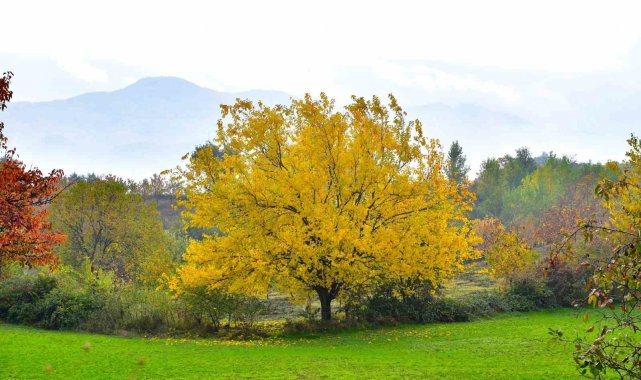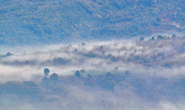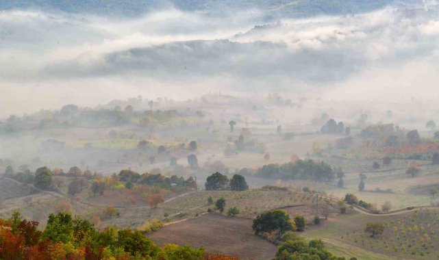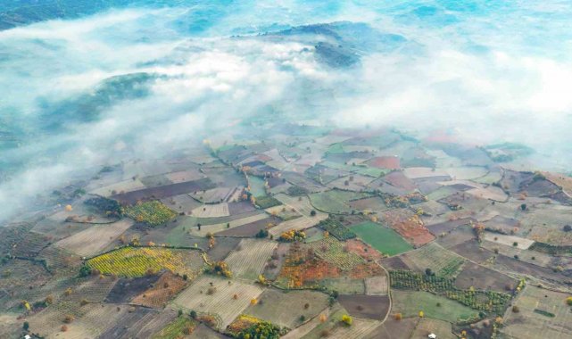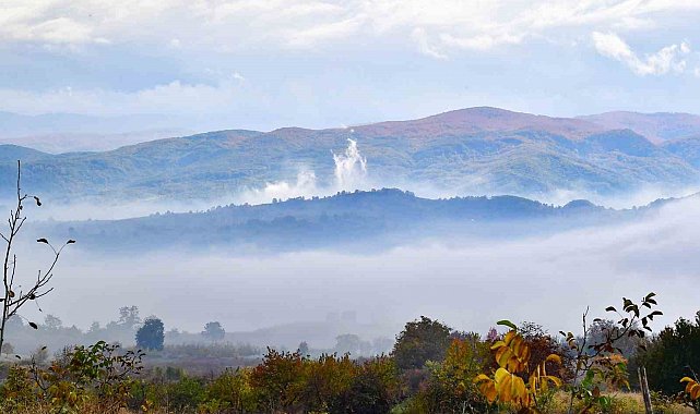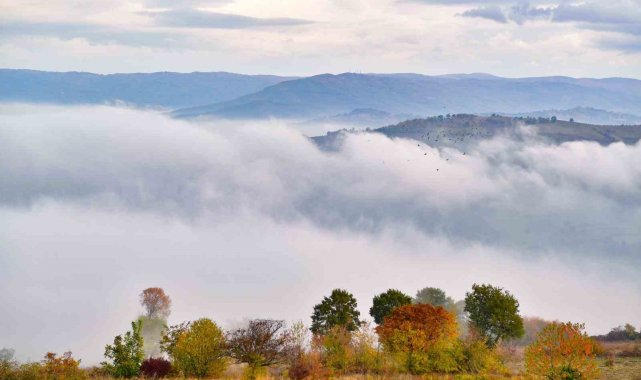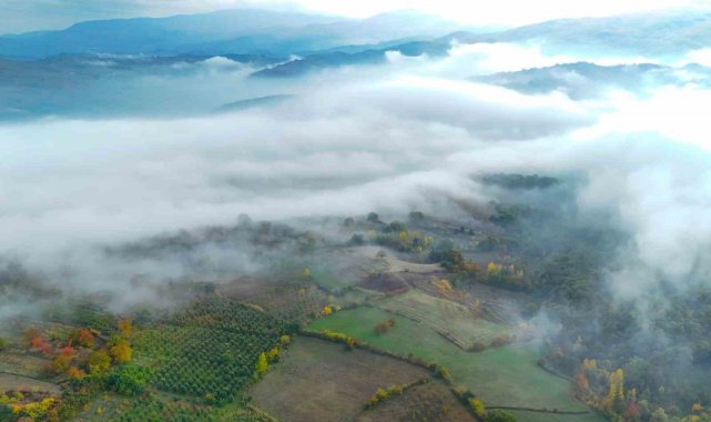 Bursa'nın İnegöl ilçesinde sonbaharın gelişiyle birlikte ortaya çıkan doğal güzellikler, görenleri büyüledi. Uludağ eteklerinde yer alan Maden Mahallesi'nin ormanlık alanları, yağmurun ardından çöken sisle birlikte adeta renk cümbüşüne sahne oldu.