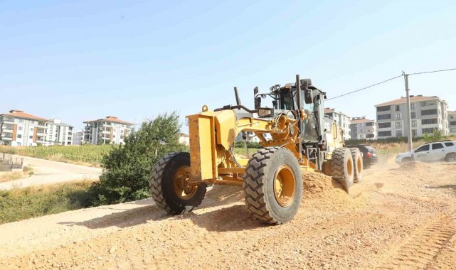 İnegöl Belediyesi şehrin gelişim bölgelerinde bir yandan yeni yeni sokaklar açarken, bir yandan da yapılaşmanın başladığı alanlarda sathi kaplama çalışmalarıyla ulaşımda konforu sağlıyor.