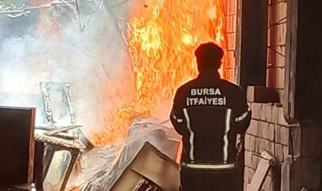 Bursa'nın İnegöl ilçesinde yıkımına başlanan 6 katlı apartmanın bahçesinde yangın çıktı.