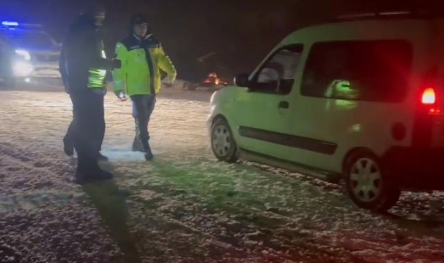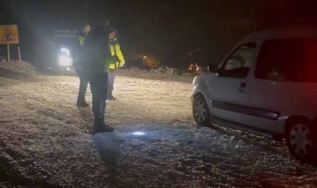 İnegöl'ün Tahtaköprü girişinde görev alan İnegöl Jandarma Komutanlığı trafik timleri, tır ve kamyonlar ile zincir takmayan otomobillerin geçişine izin vermedi.